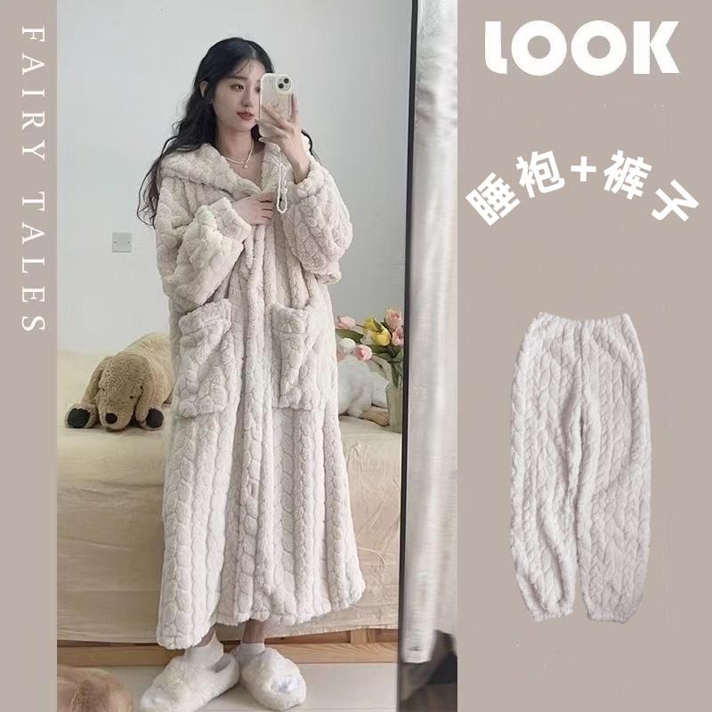 新亚瑞睡衣女秋冬季加厚珊瑚绒卡通可爱怪兽睡袍女款2024新款