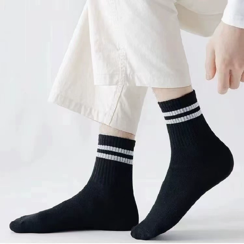 三枪运动条纹商务男女款透气跑步吸汗中短筒厚款休闲白春秋健身1