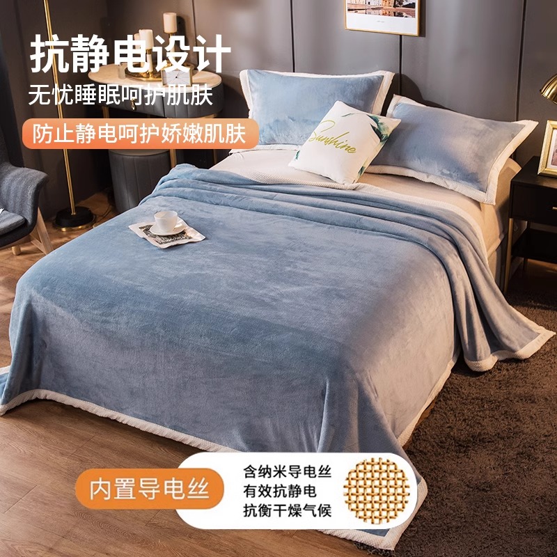 无印良品牛奶绒獭兔绒空调毯绒毯冬季加厚沙发毯办公室午睡盖毯子