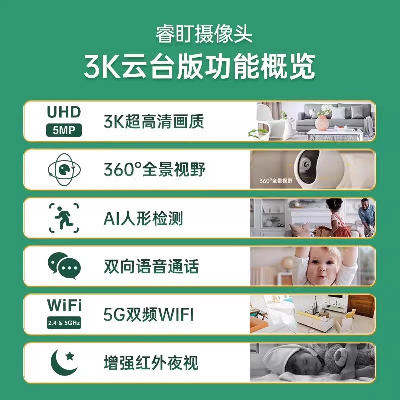 Arenti睿盯2K高清智能宠物监控家用摄像头远程手机摄影头WIFI云台