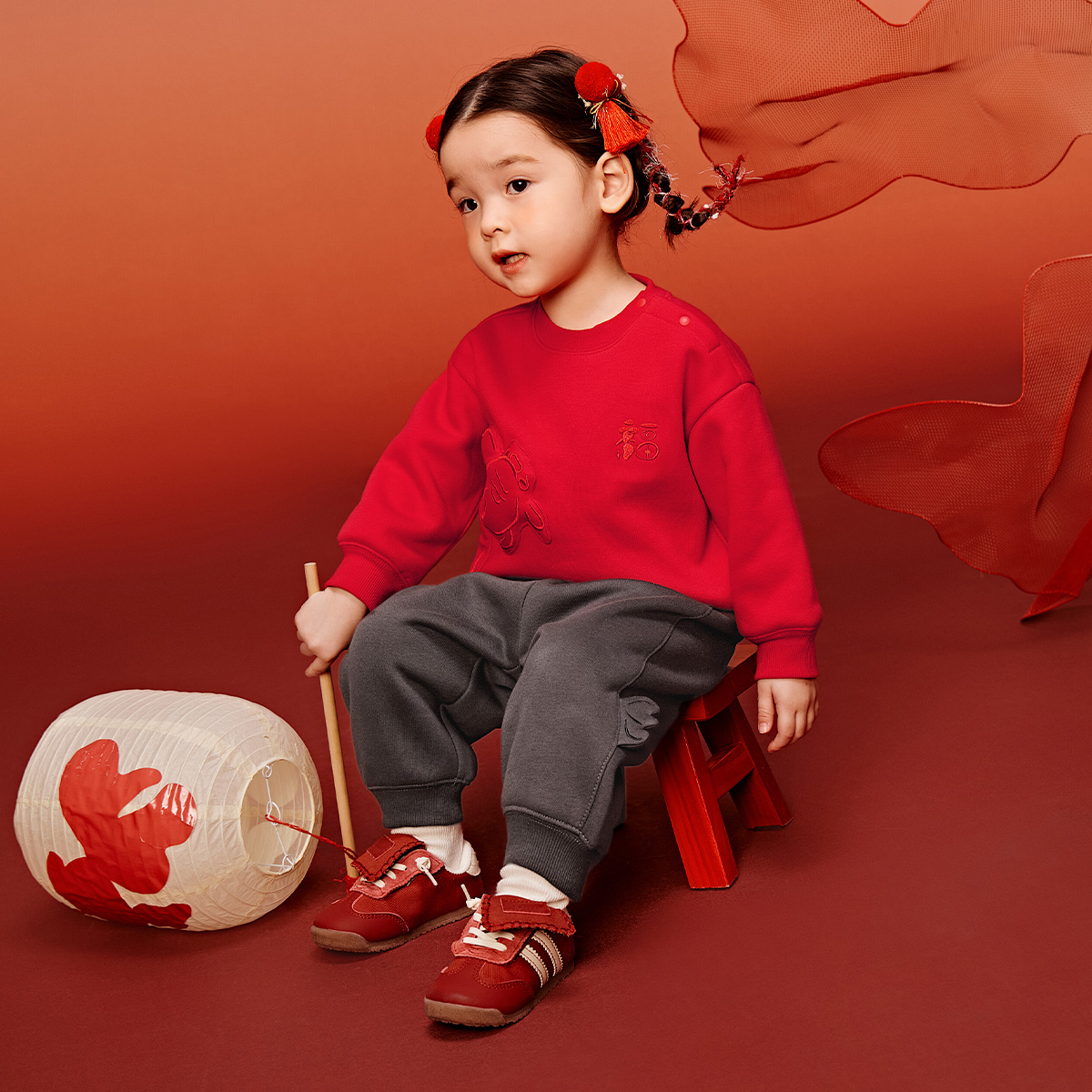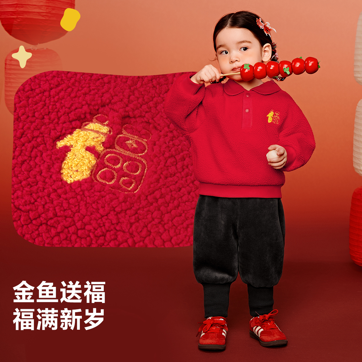 【非遗联名】迷你巴拉巴拉加绒长袖套装一体绒男女童拜年2025新款