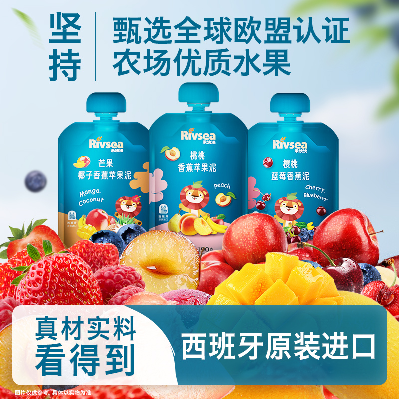 【任选】禾泱泱进口水果泥宝宝婴儿辅食泥无添加白砂糖100g/袋