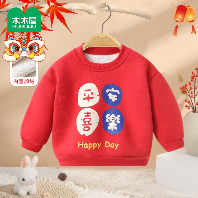 木木屋2024新款儿童秋冬装加绒卫衣女童宝宝加厚上衣秋款保暖长袖