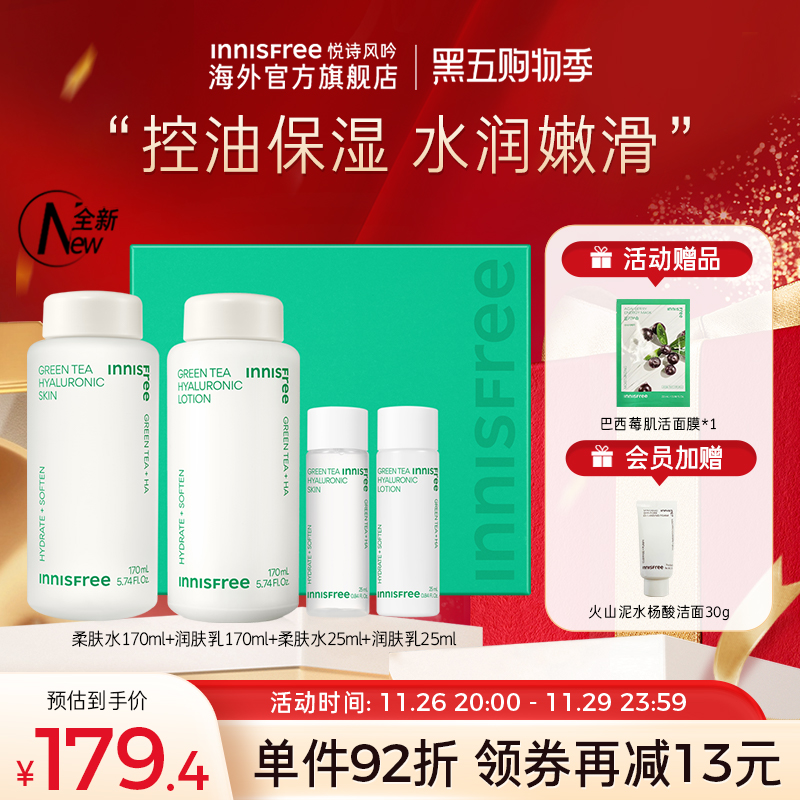 悦诗风吟innisfree绿茶水乳护肤套盒旗舰店正品化妆品补水控油女