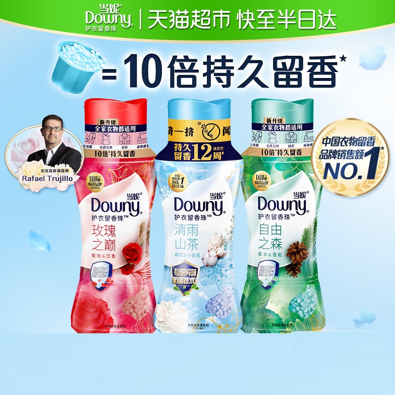 当妮留香珠200gx3瓶10倍持久留香清雨山茶玫瑰除菌洗衣凝珠