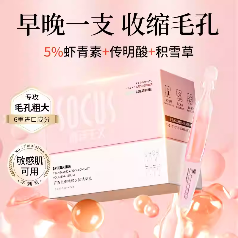 虾青素次抛精华液收缩毛孔粗大去黄提亮改善暗沉肤色烟酰胺正品官