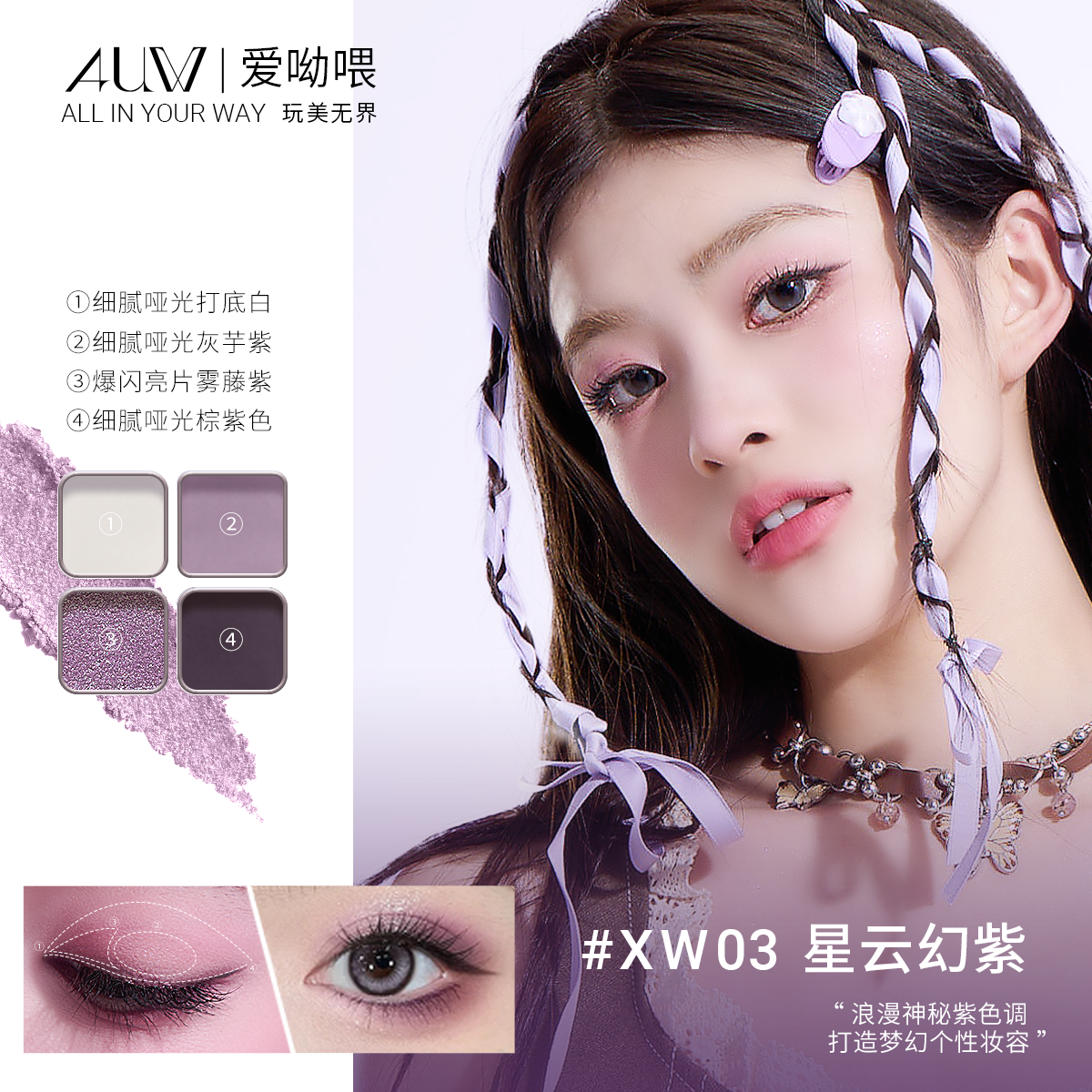 AUW爱呦喂玩美无界星雾四色多用粉盘 眼影高光修容爆闪珠光新手