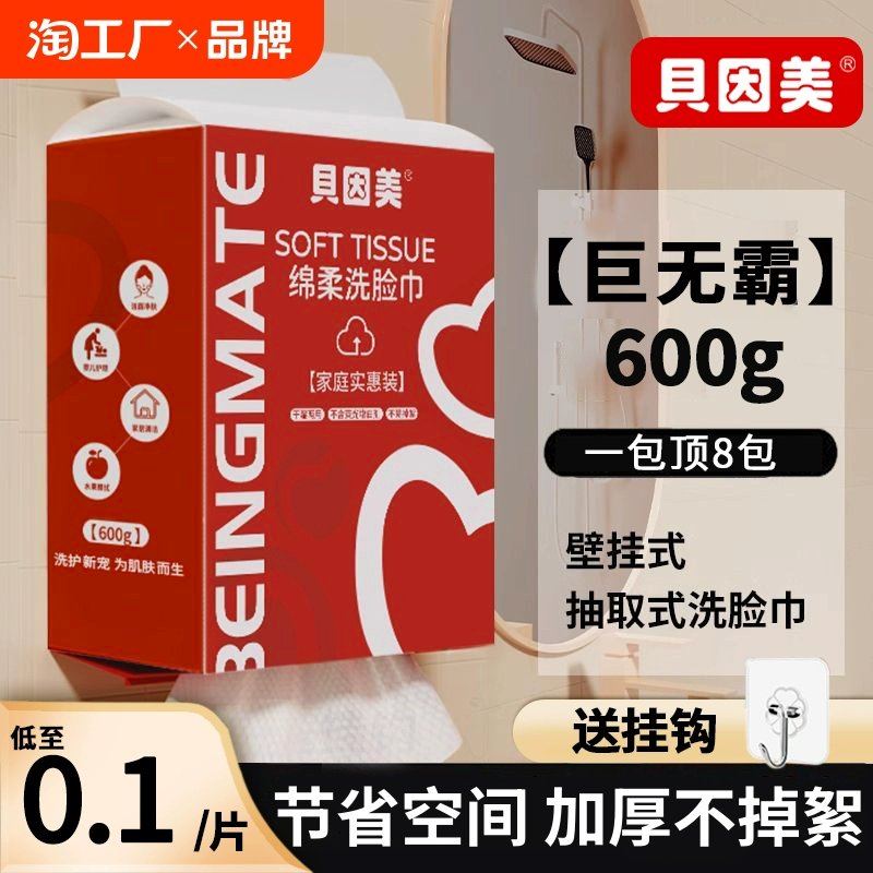 贝因美洗脸巾壁挂式擦脸洁面巾纸一次性棉柔巾悬挂抽取式干湿两用