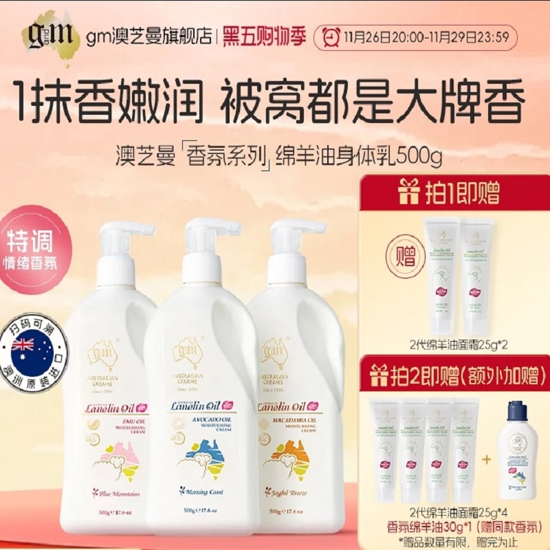 G&M/澳芝曼绵羊油身体乳香氛型原装进口保湿滋润补水干燥男女乳液