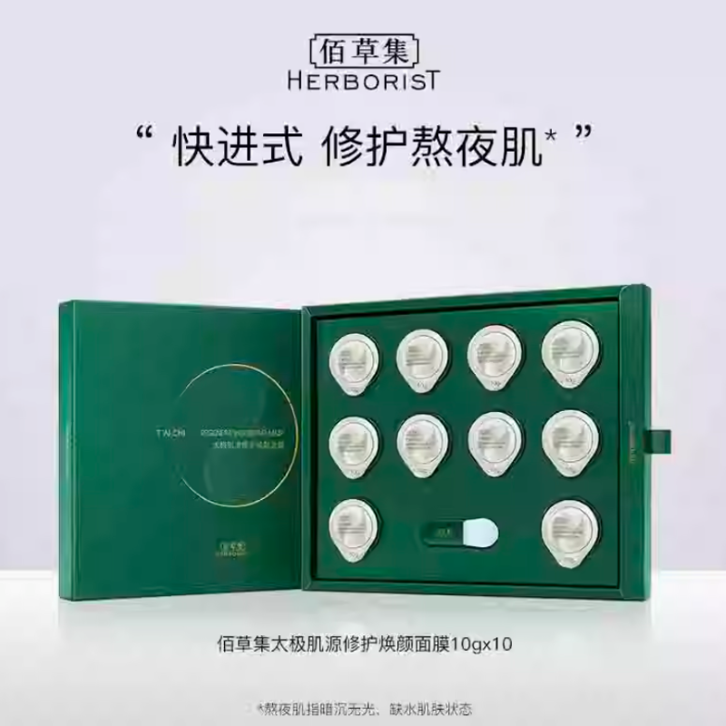 【达人直播间】佰草集太极小绿罐面膜10g*10修护舒缓涂抹晚安面膜