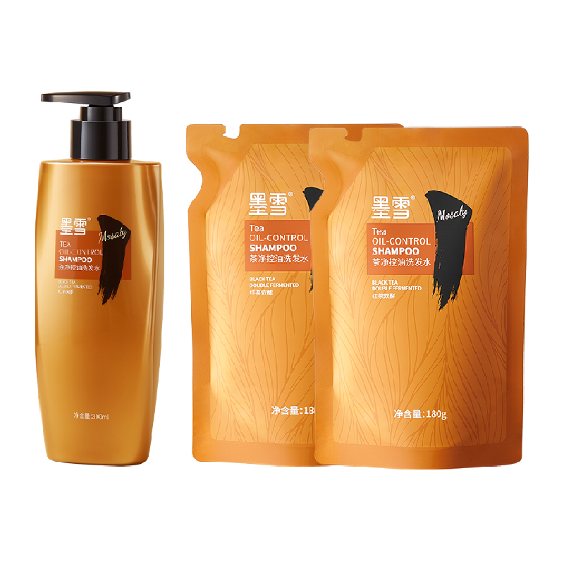 墨雪茶净控油洗发水300ml+180g*2温和清洁去屑控油丰盈蓬松