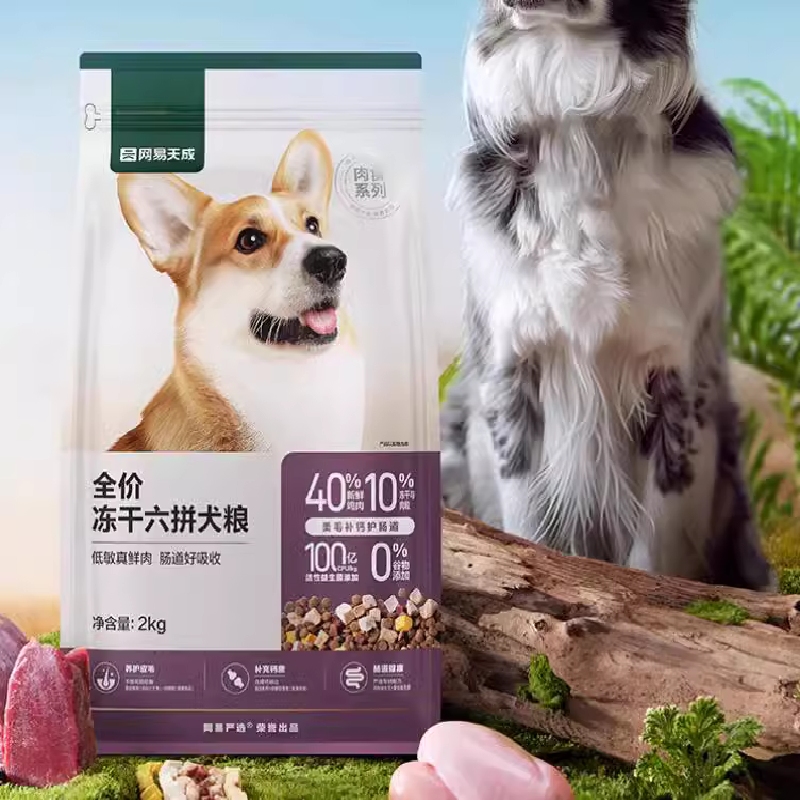 网易严选全价冻干六拼犬粮2kg鲜肉狗粮生骨肉大中小型犬天成幼犬
