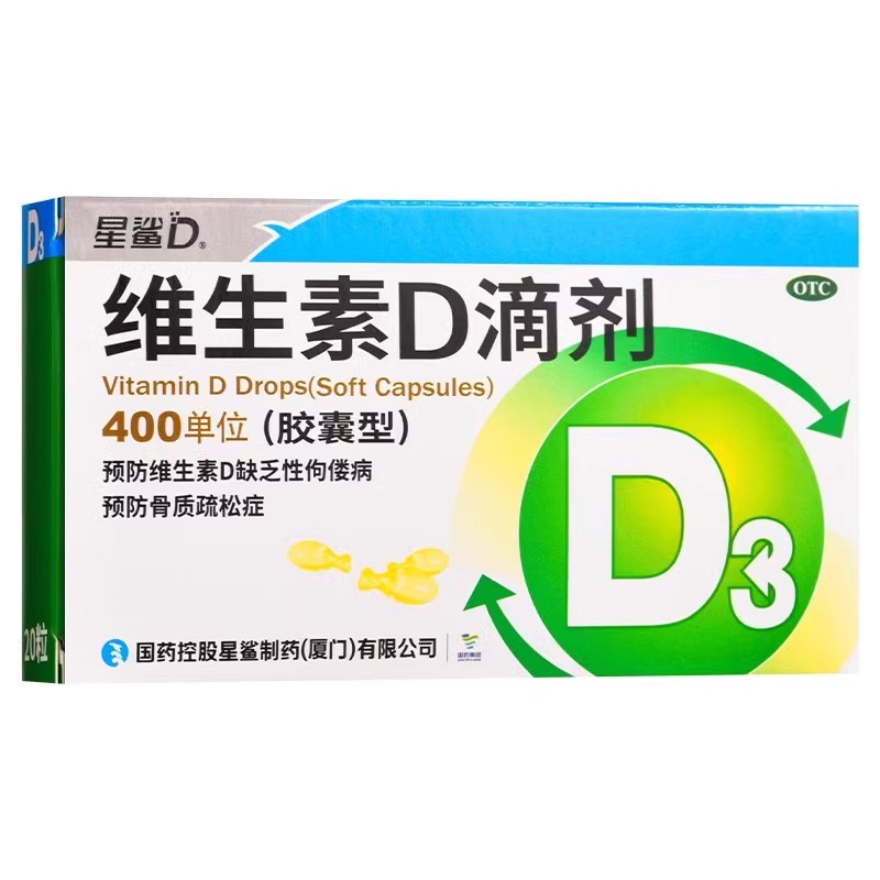 星鲨维生素d3滴剂胶囊型400iu婴幼儿维d一岁以上儿童维生素鱼肝油