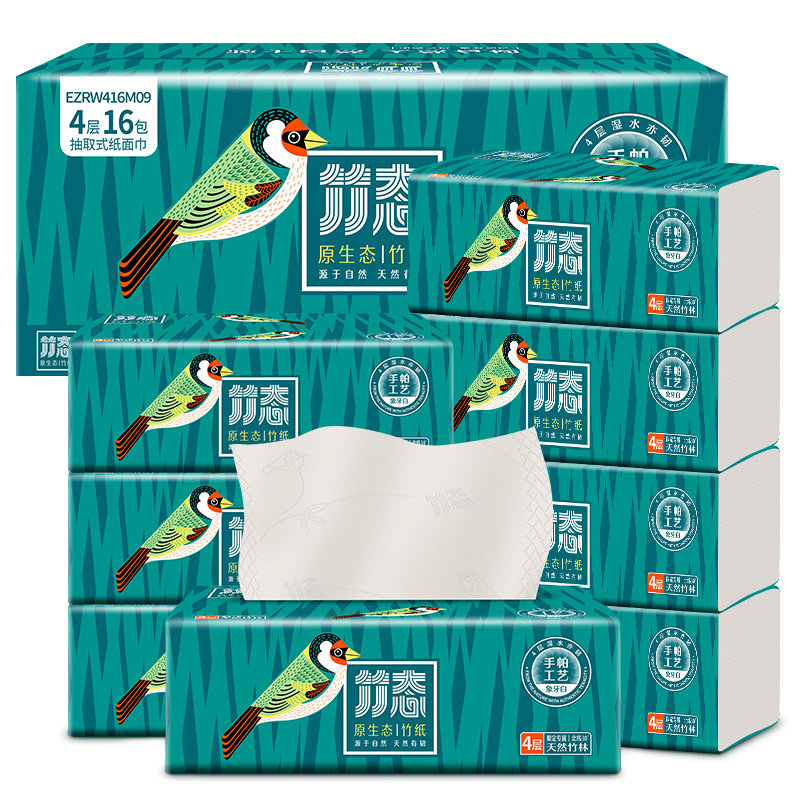 竹态软抽纸象牙白4层90抽16包加厚家用纸巾餐巾纸整箱家庭装