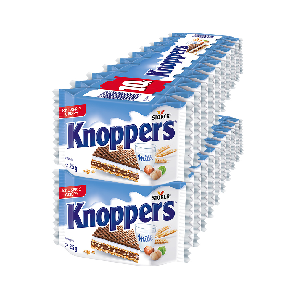 【自营】德国Knoppers牛奶巧克力榛子威化饼干10连包 250g*2进口