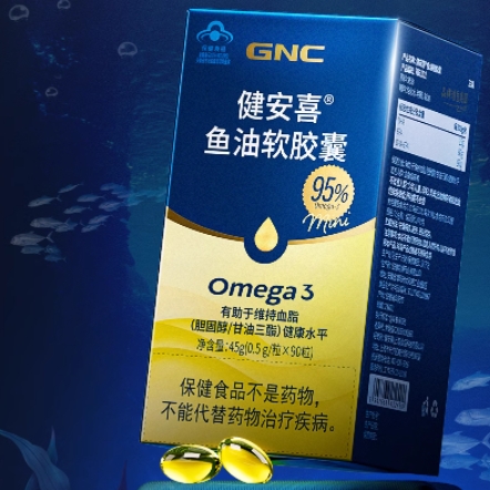 GNC健安喜鱼油90粒成人EPA+DHA胶囊gnc95高纯度鱼油小颗粒Omega3