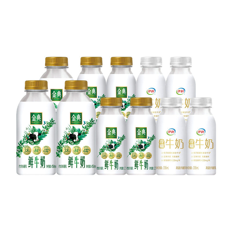 伊利金典鲜牛奶450ml*3+金典235ml*4+小白瓶235ml*4低温早餐奶