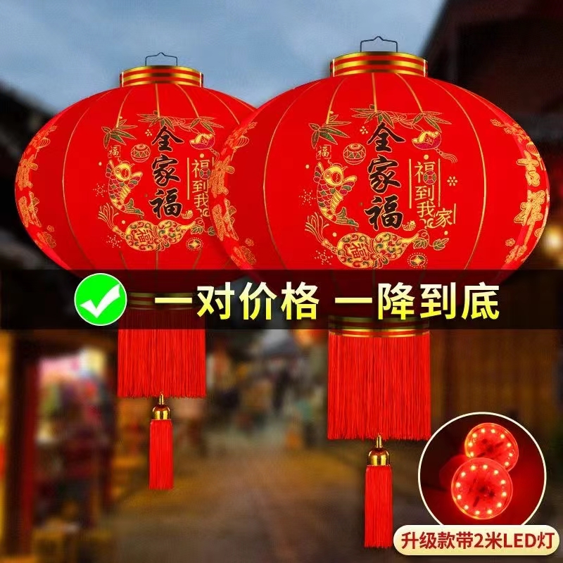 新年大红灯笼户外阳台农村大门口植绒灯笼挂饰遥控插电池太阳能灯