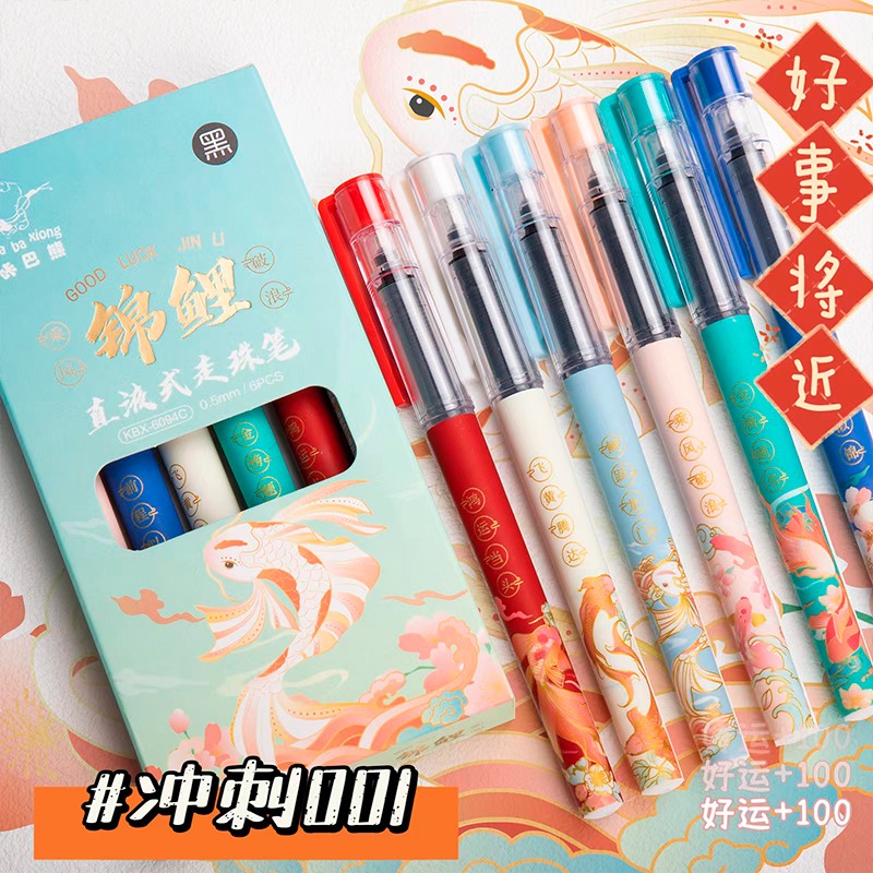 直液式走珠中性笔速干日系高颜值锦鲤刷题大容量考试用学生专用秒干全针管笔红笔黑笔彩色水笔碳素圆珠笔批发